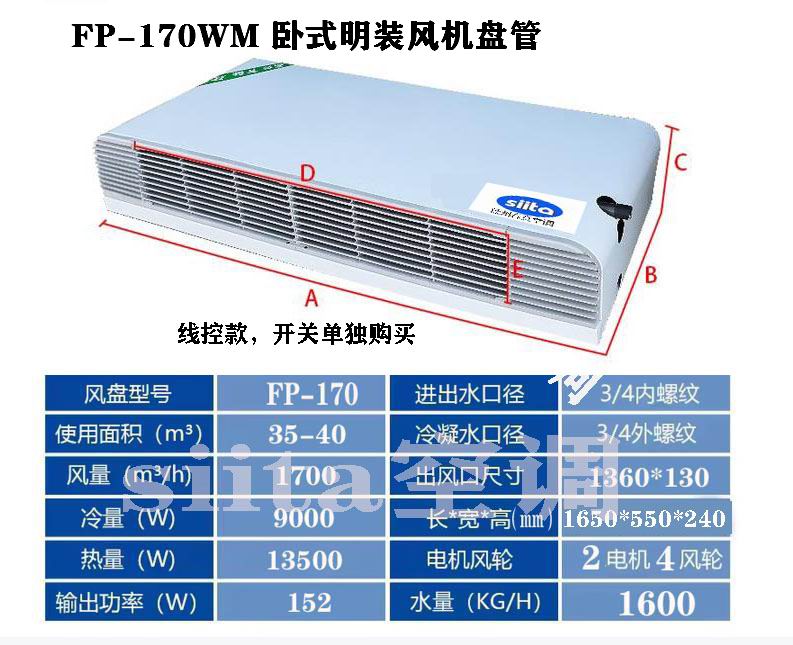 安裝方式:“臥式” 指設(shè)備水平安裝,通常貼緊天花板或吊掛在房間上部。“明裝” 同樣意味著其機(jī)身、進(jìn)出水管、冷凝水管及電源線均明敷在室內(nèi)可見位置,無需吊頂包裹。